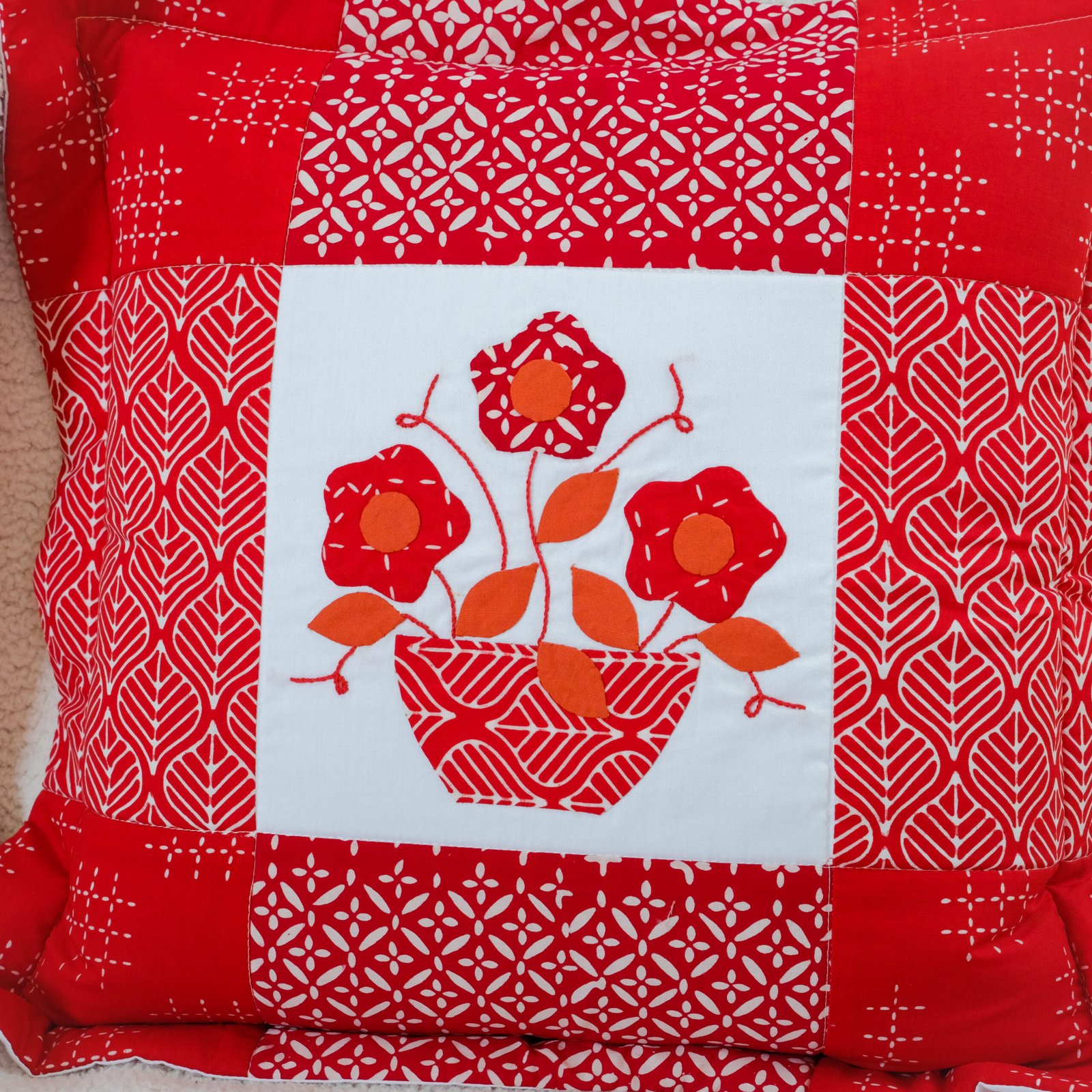 Hanara is a cushion cover that combines the elegance of authentic hand-stamped batik (not printing) with the charm of handcrafted appliqué. Every stitch is made with care, turning this piece into more than just a cushion cover. It adds warmth and artistry to your living space.