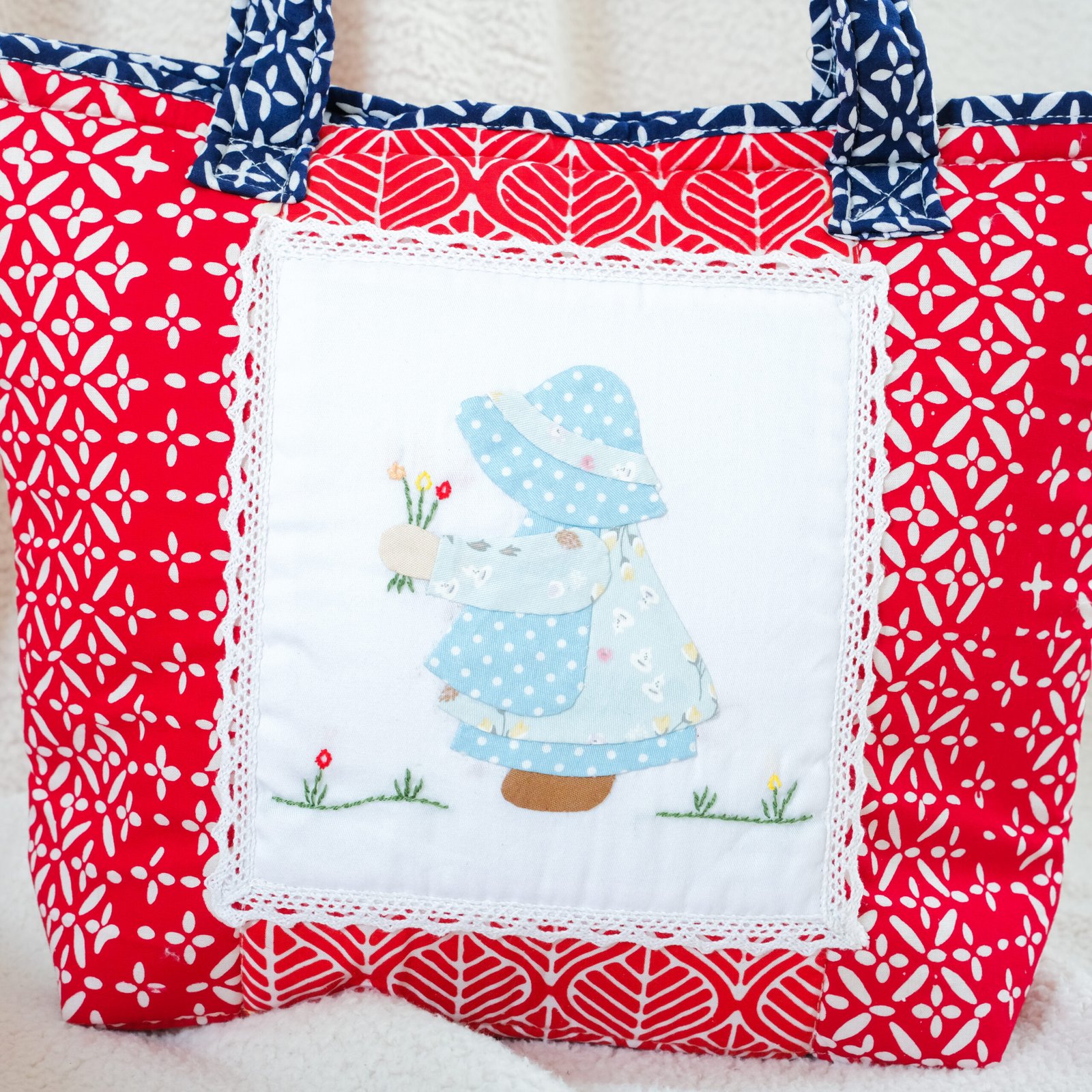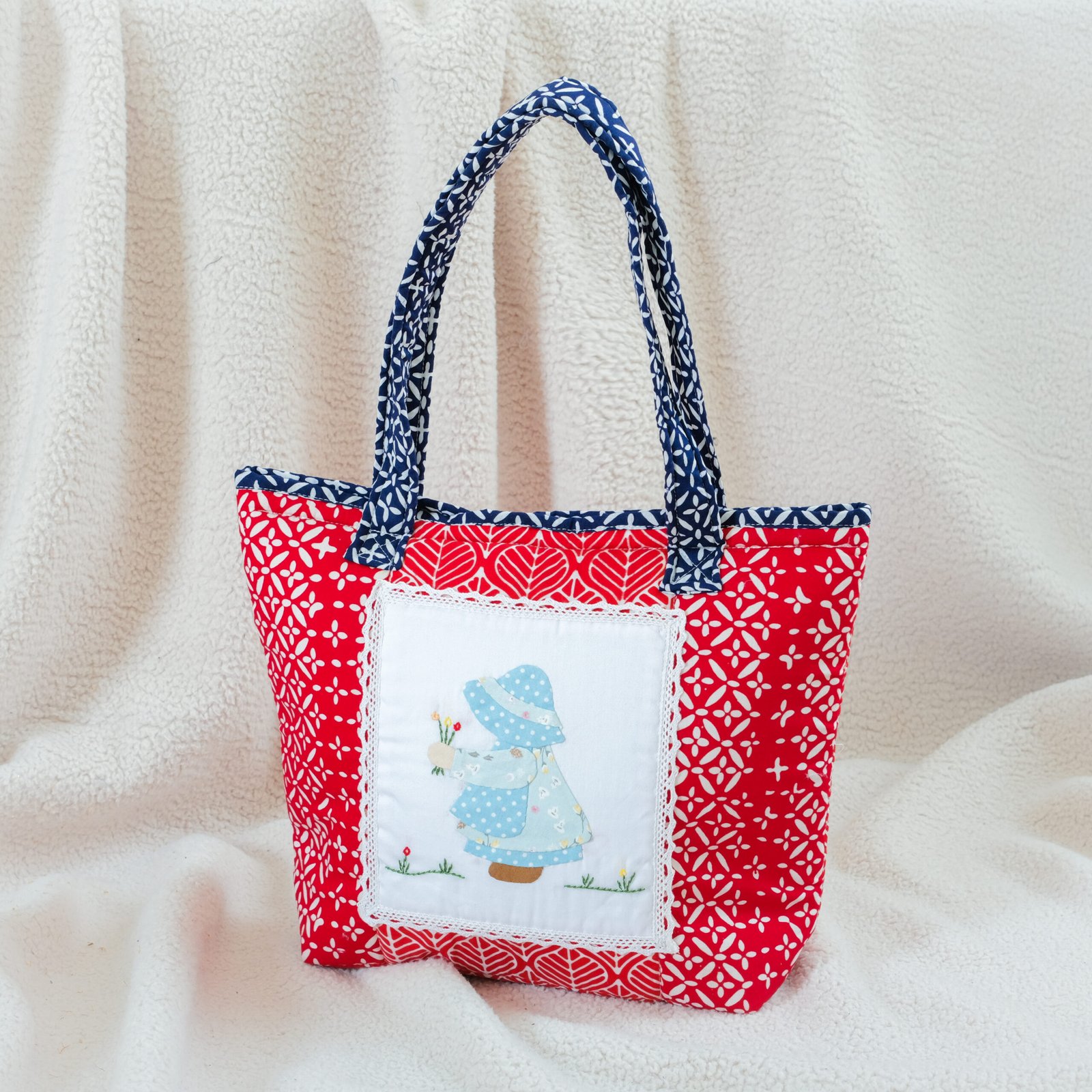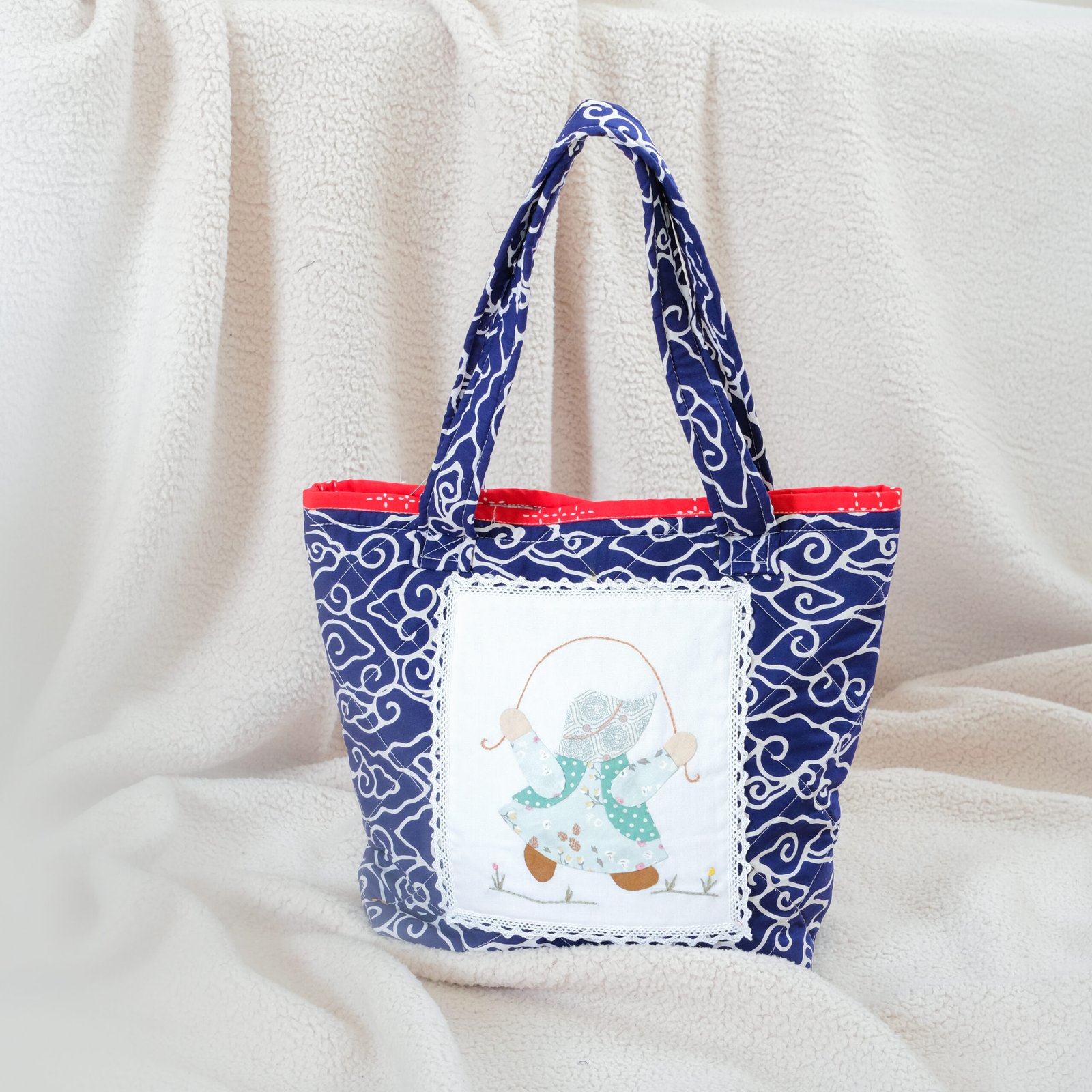 Elevate your everyday style with our Handmade Sunbonnet Tote Bag, a perfect blend of tradition and timeless elegance. Each bag is crafted with an exclusive batik cap fabric (not printing), ensuring authenticity and artistry in every pattern. The hand-applied sunbonnet design adds a charming handmade touch, making every piece truly unique.