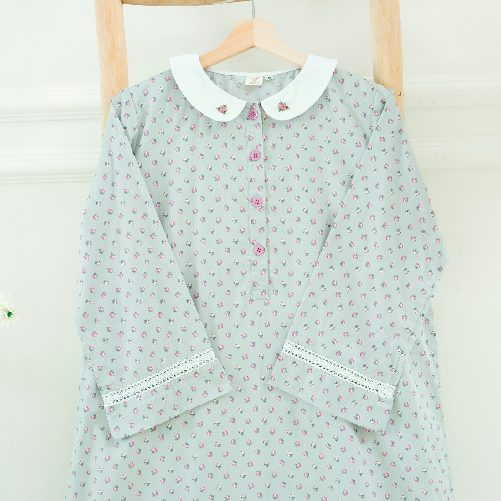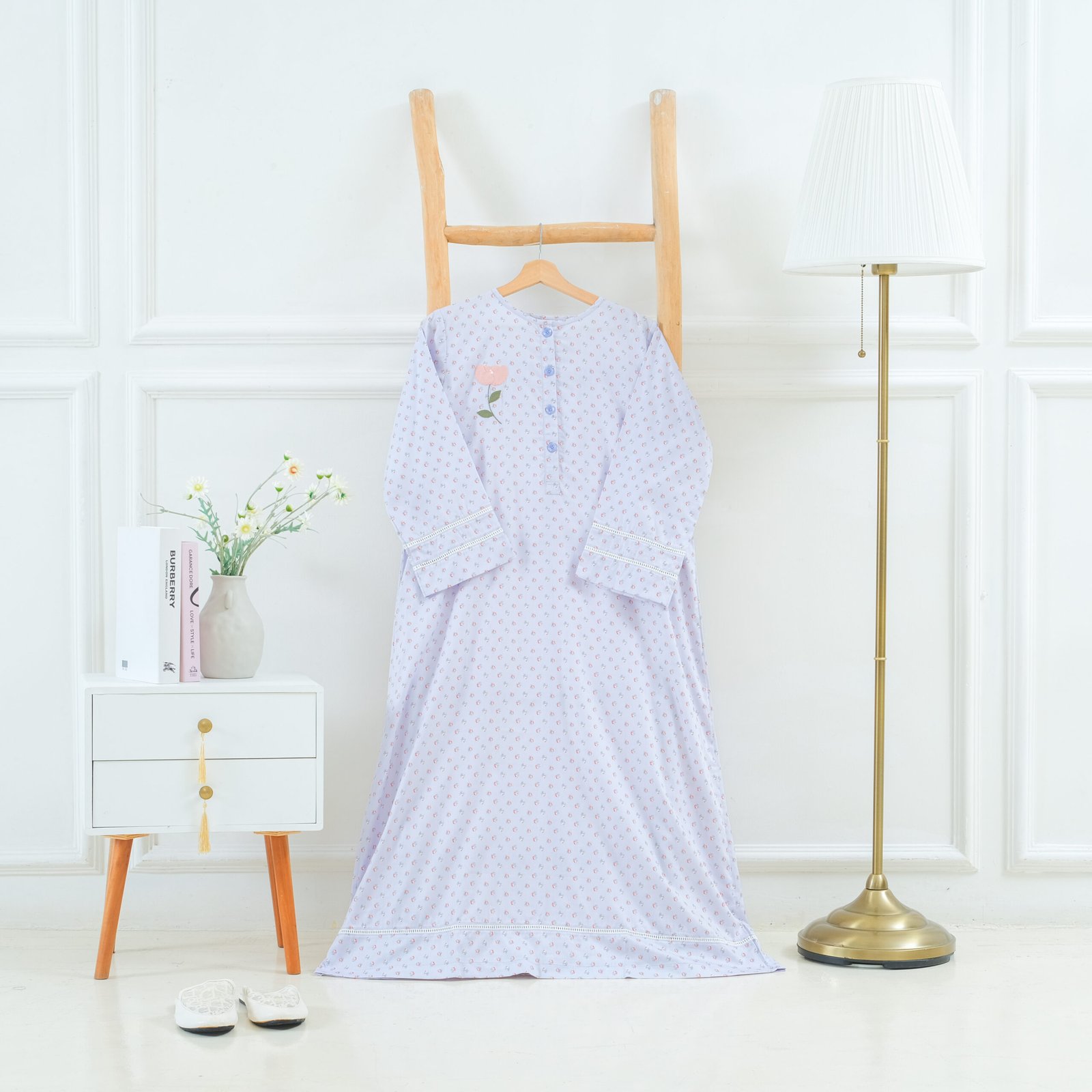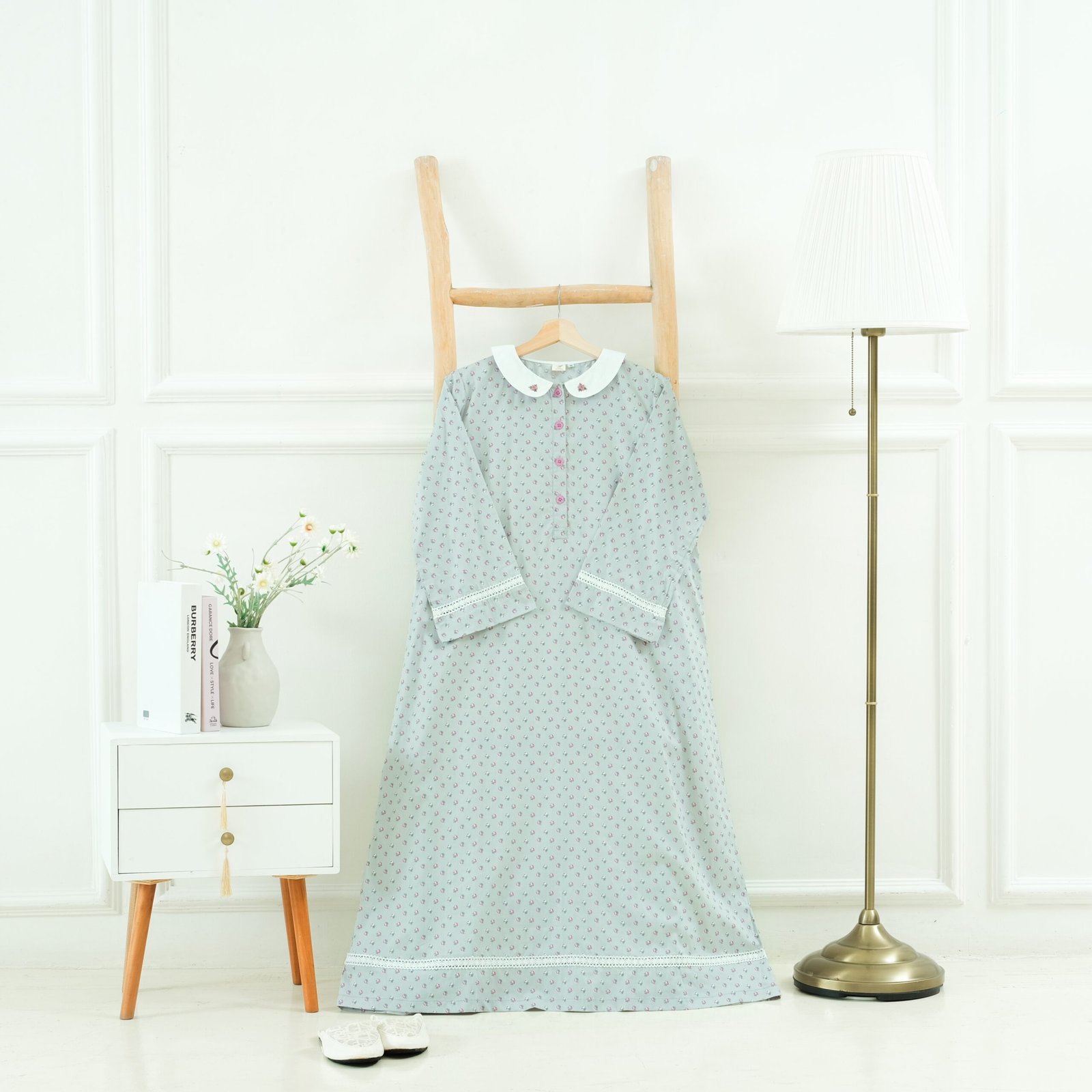 Atasan didesain dengan bukaan depan berkancing yang praktis sehingga nyaman dipakai sekaligus ramah untuk ibu menyusui. Dipadukan dengan celana panjang berpinggang karet elastis, memberikan kenyamanan ekstra tanpa menekan atau menimbulkan rasa sakit. Dengan jahitan rapi, detail anggun, dan desain elegan,piyama ini menjadikan penampilan tetap stylish meskipun hanya di rumah.