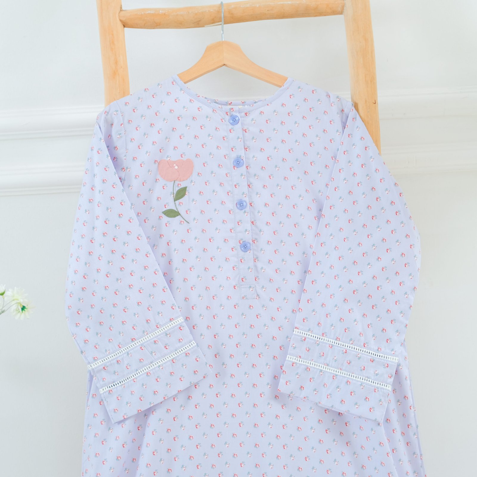 The top features a front button opening that makes it practical to wear and nursing-friendly. Paired with long pants with an elastic waistband, it ensures maximum comfort without pressure or discomfort. With neat tailoring and an elegant design, this pajama set keeps you looking graceful and stylish even in your relaxed moments at home.