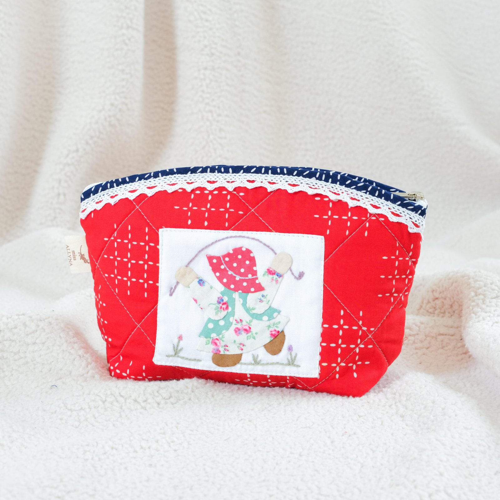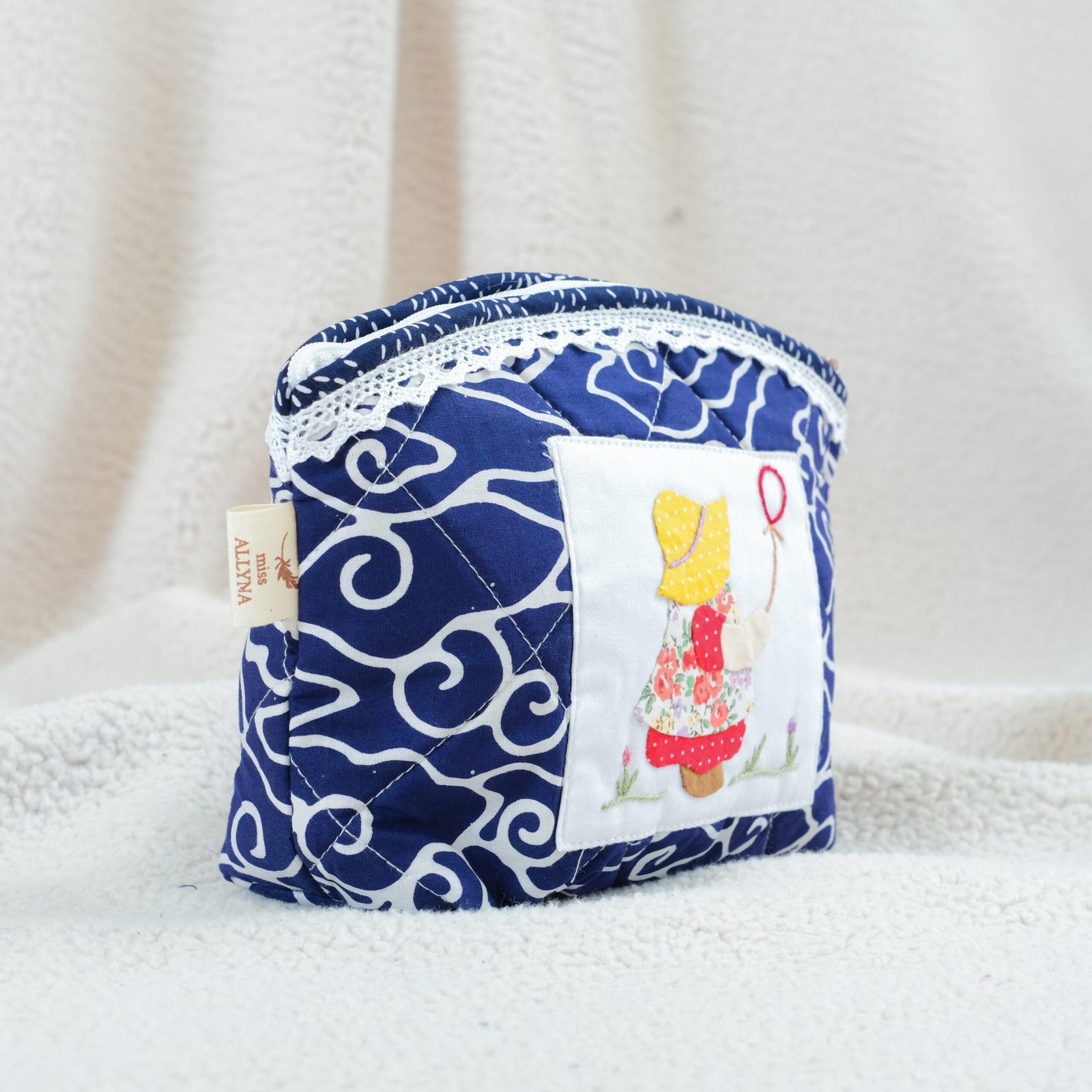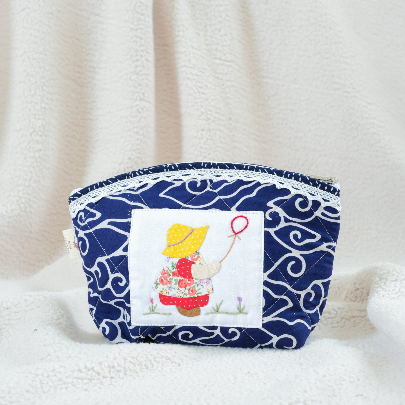 Pouch ini dibuat dari kain batik cap asli yang dipadukan dengan appliqué sunbonnet dan sulaman handmade penuh detail. Sentuhan batik tradisional yang berpadu dengan kerajinan tangan ini menghadirkan karakter unik pada setiap pouch—menjadikannya bukan sekadar tempat penyimpanan, tetapi juga karya kecil yang istimewa.