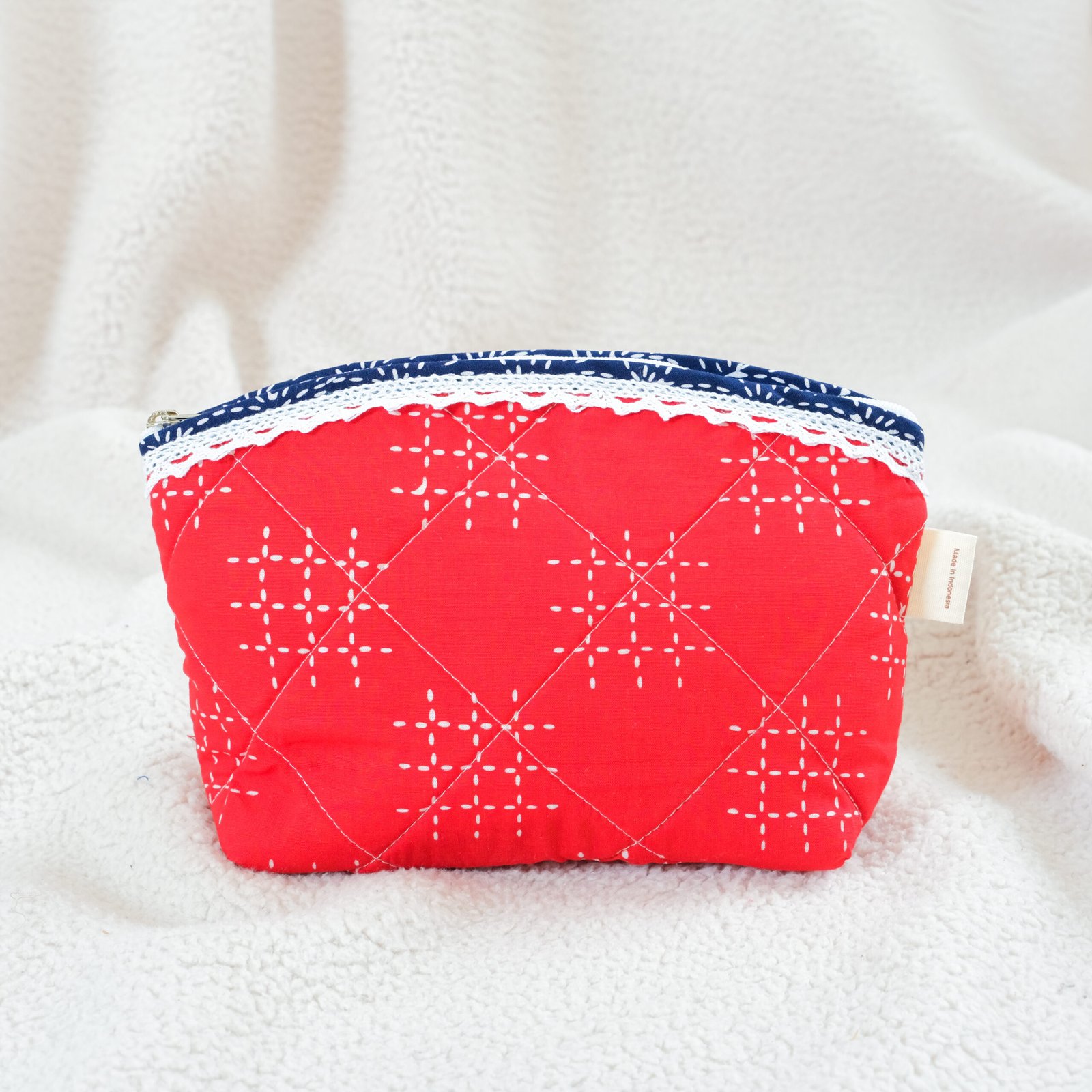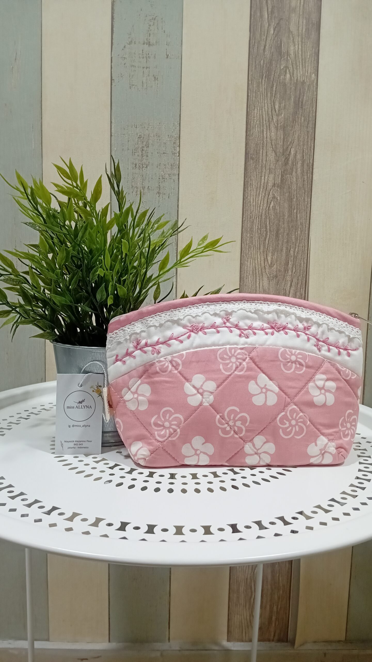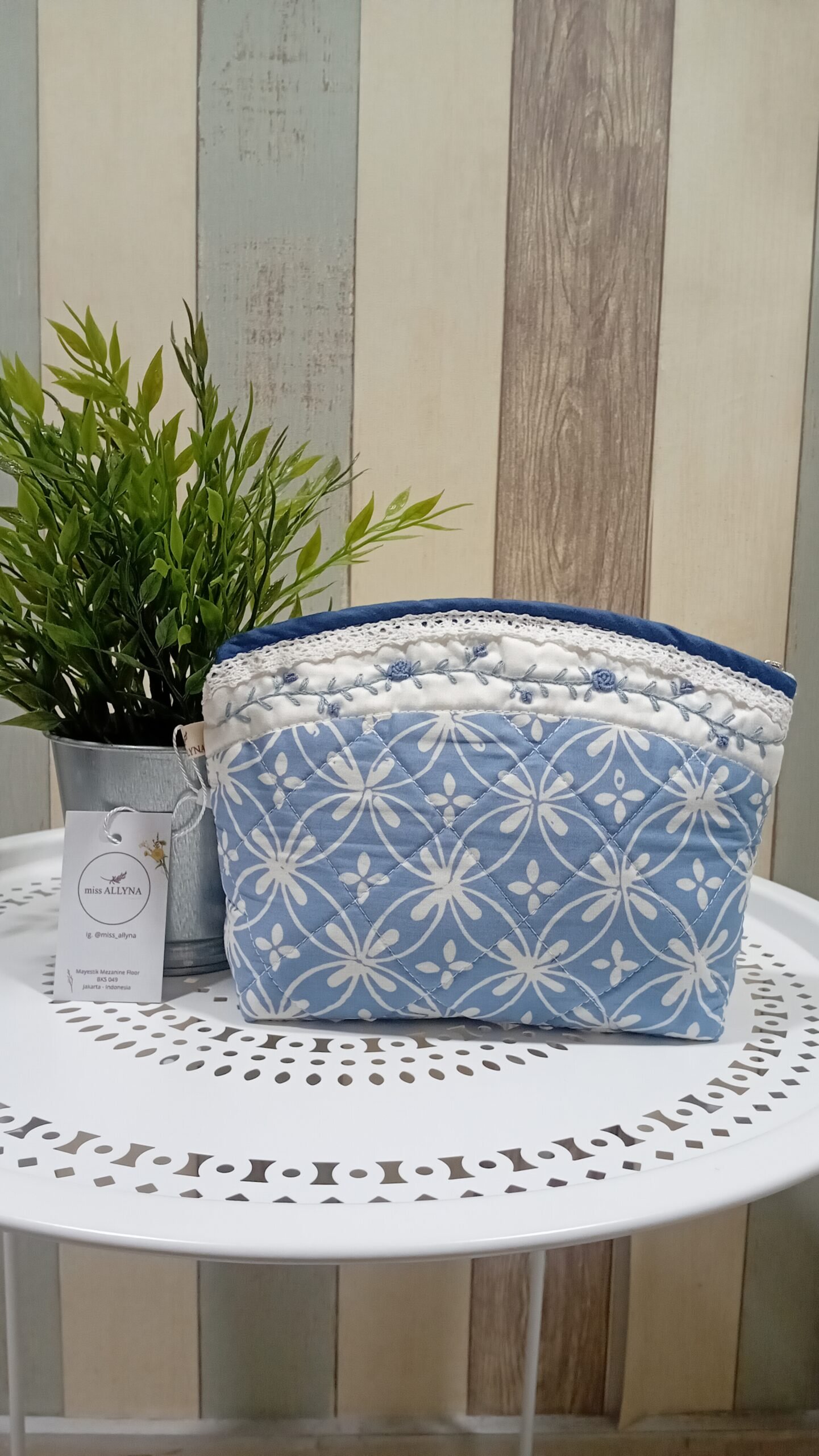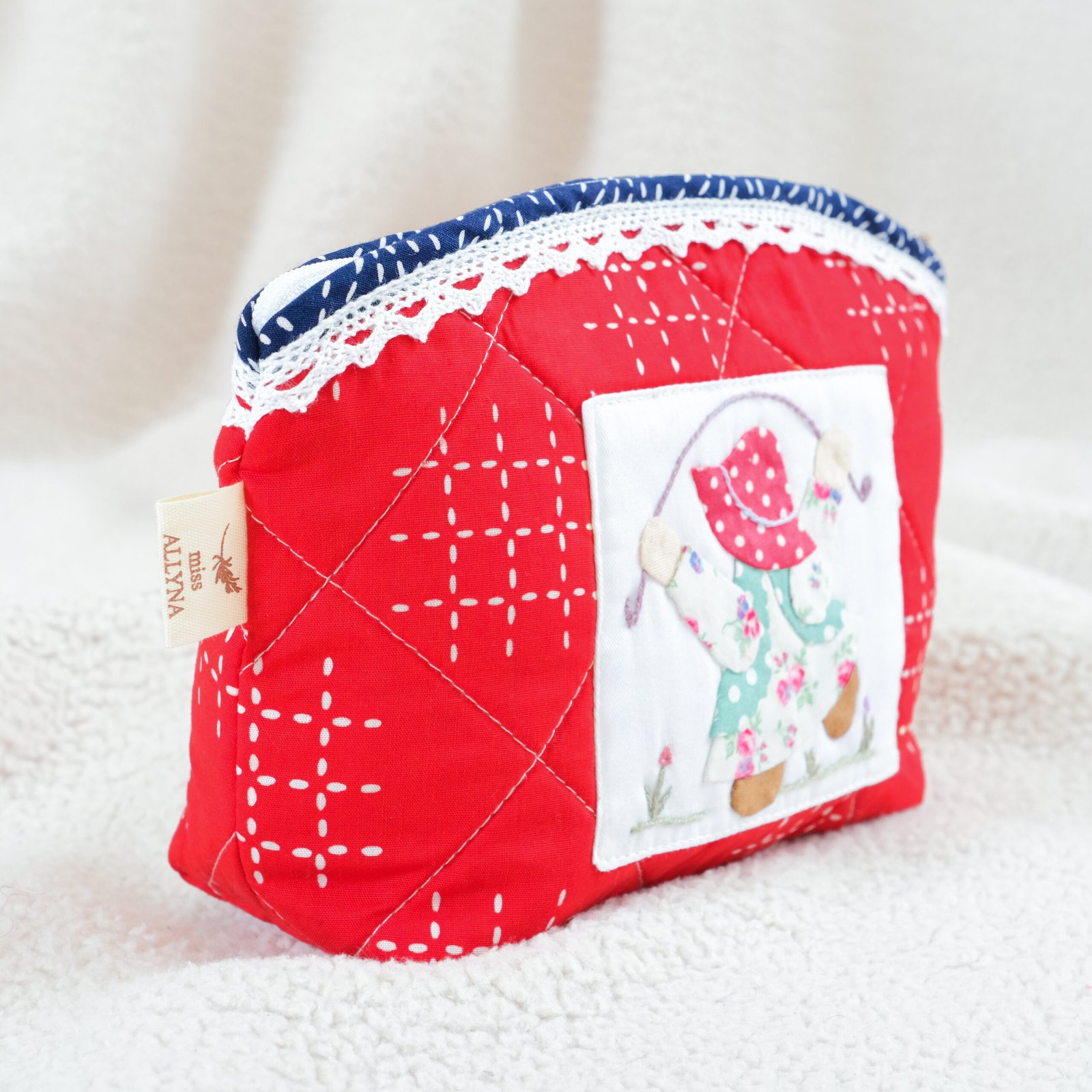 Pouch ini dibuat dari kain batik cap asli yang dipadukan dengan appliqué sunbonnet dan sulaman handmade penuh detail. Sentuhan batik tradisional yang berpadu dengan kerajinan tangan ini menghadirkan karakter unik pada setiap pouch—menjadikannya bukan sekadar tempat penyimpanan, tetapi juga karya kecil yang istimewa.